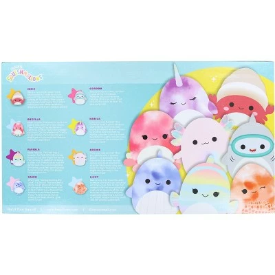 - 8 PACK OF CUDDLES: This set of Squishmallow mini plush includes – Fabiola the Rainbow Fish, Gordon the Shark, Livvy the Starfish, Nabila the Narwhal, Orzella the Octopus, Samir the Blue Whale, Archie the Axolotl, and Indie the Hermit Crab!